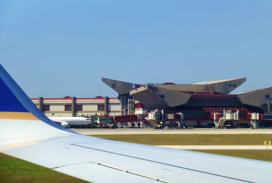 Aircraft approaches Terminal 3 in Havana